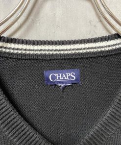 古着 used CHAPS チャップス ワンポイント刺繍ニットベスト Vネック 黒 ブラック シンプル ノームコア