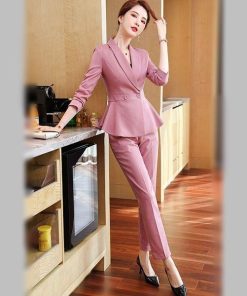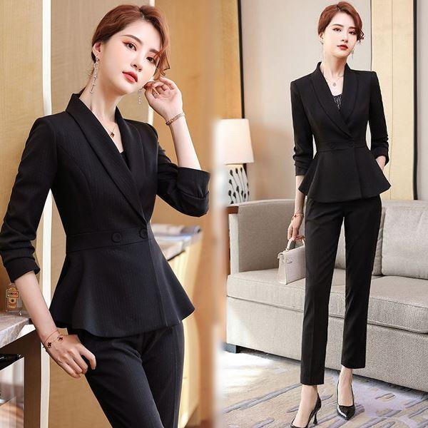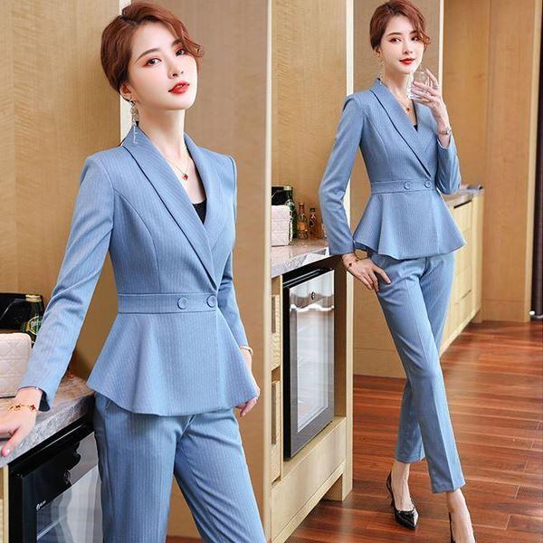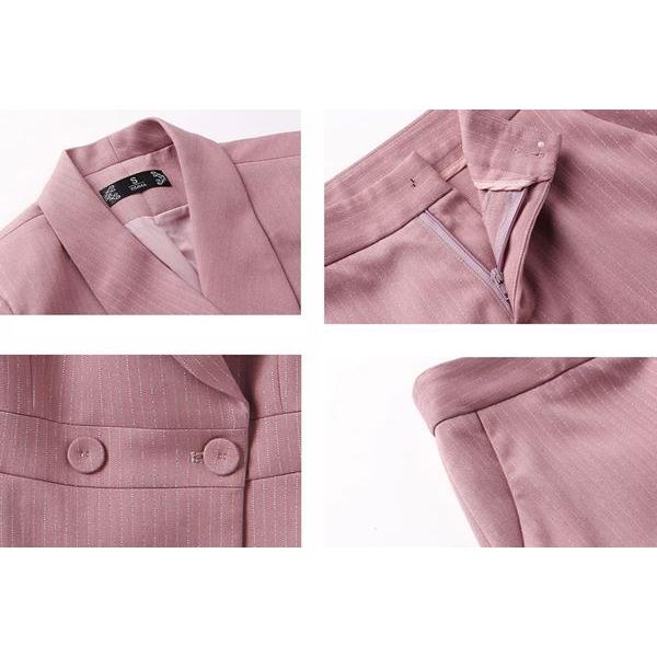 大きいサイズ スーツ フォーマル OL ペプラムJK!パンツorスカートスタイルのストライプ柄レディーススーツ 2点セット 3L 4L 5L 6L サイズ セール