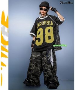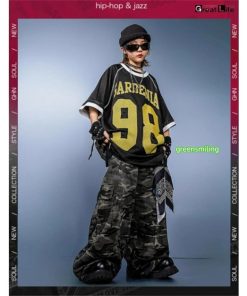 柄 HIPHOP 練習着 ダンス衣装 キッズ 小学生 女の子 男の子 ダンス 衣装 ヒップホップ バスケウェア グレー ズボン かっこいい 黒 Tシャツ 子供