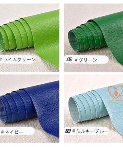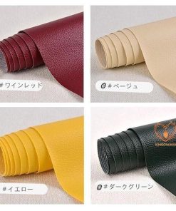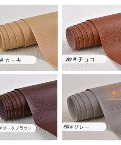 合皮レザー生地の裏面が接着シールになっており、様々な物に貼り付けることが出来ます。手軽にDIYができる当店の商品です。