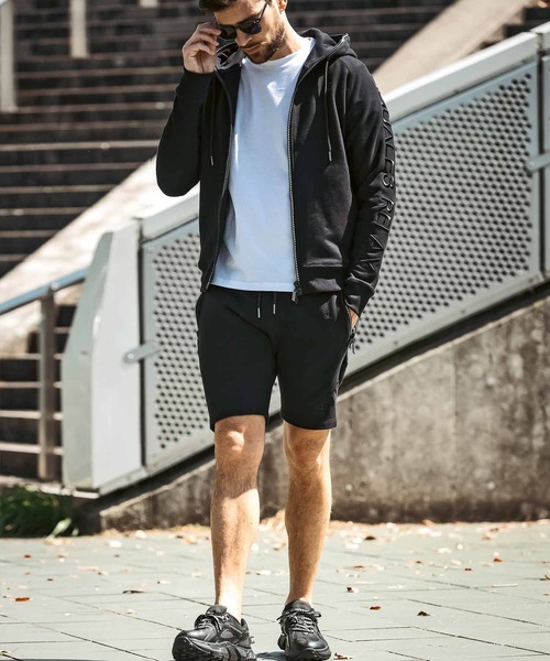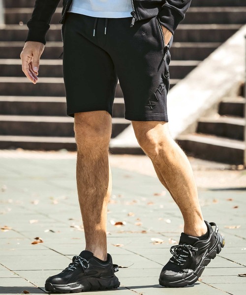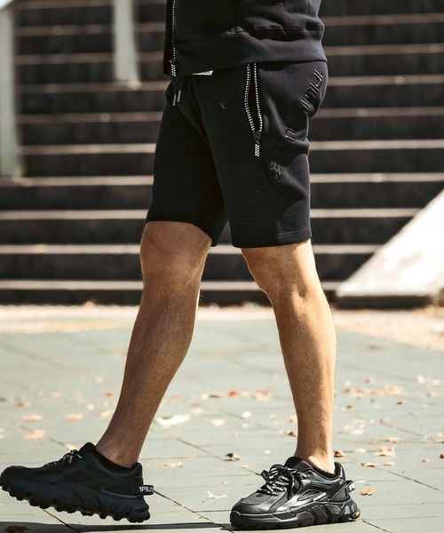 商品名:1PIU1UGUALE3 RELAX(ウノピゥウノウグァーレトレ リラックス)ラインストーン ロゴ刺繍 スウェットショーツ ショートパンツ