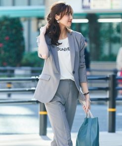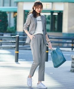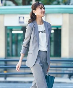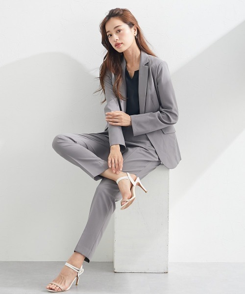 参考商品名:【販売終了】【うすカル】シャドーストライプストレッチパンツスーツ(テーラードジャケット+9分丈テーパードパンツ)