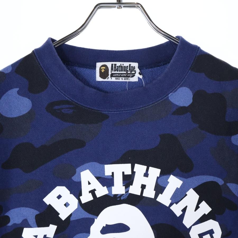 A BATHING APE アベイシングエイプ COLOR CAMO COLLEGE CREWNECK カモ総柄 ロゴプリント クルーネックスウェットトレーナー ブルー 001SWI301015M