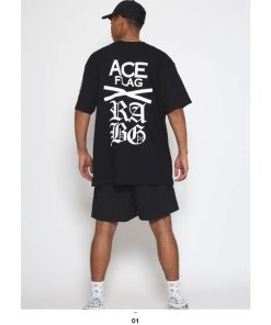ACEFLAG ACE FLAG 上下セット 半袖 ブランド Tシャツ ハーフパンツ 上下 黒 大きいサイズ エースフラッグ セットアップ ナイロン 国旗 Aロゴ ハッシュタグ b系