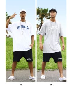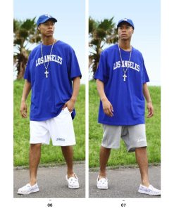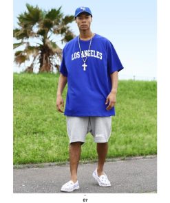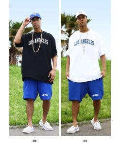 LA(エルエー)の 略称で馴染み深いLos Angelesロゴをドロップした、Tシャツとスウェットハーフパンツの上下セット。全7色。