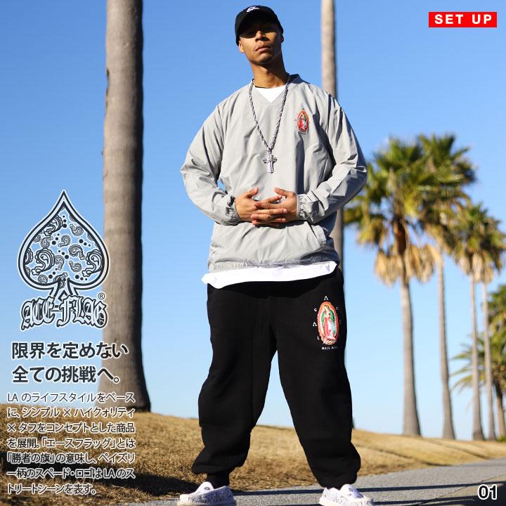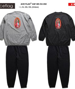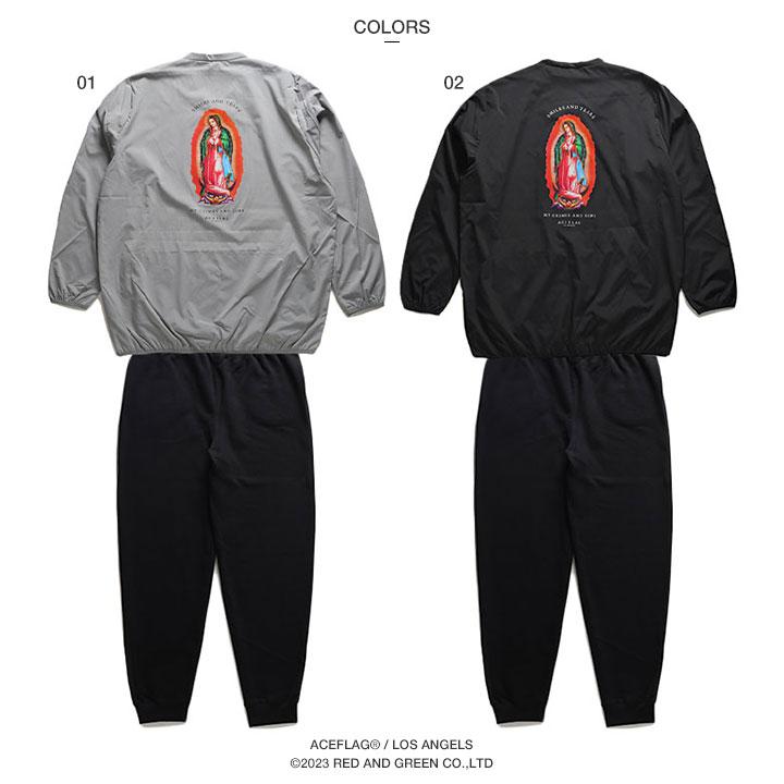 ACEFLAG ACE FLAG 上下セット 長袖 大きいサイズ エースフラッグ セットアップ ブルゾン ピステ ナイロン アウター 上下 マリア 聖母マリア ロゴ ビッグシルエット b系