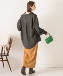 キーワード:ブラウス シャツ レディース レギュラーカラー ロング丈 長袖 無地 プチプラ ベーシック 公園 紅葉 大人カジュアル