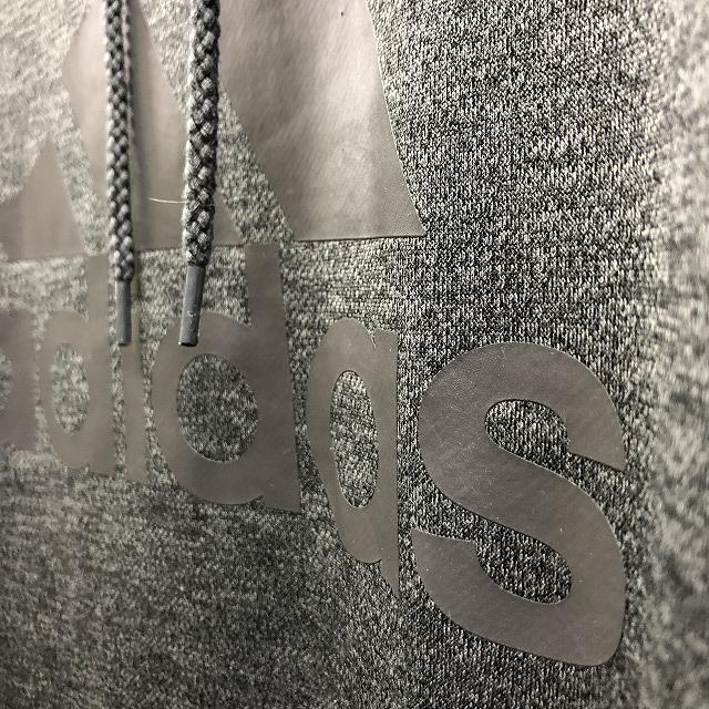 adidas アディダス パーカー プルオーバー ロゴプリント 長袖 カットソー ポリエステル100% M ヘザーネイビー 杢灰色 メンズ