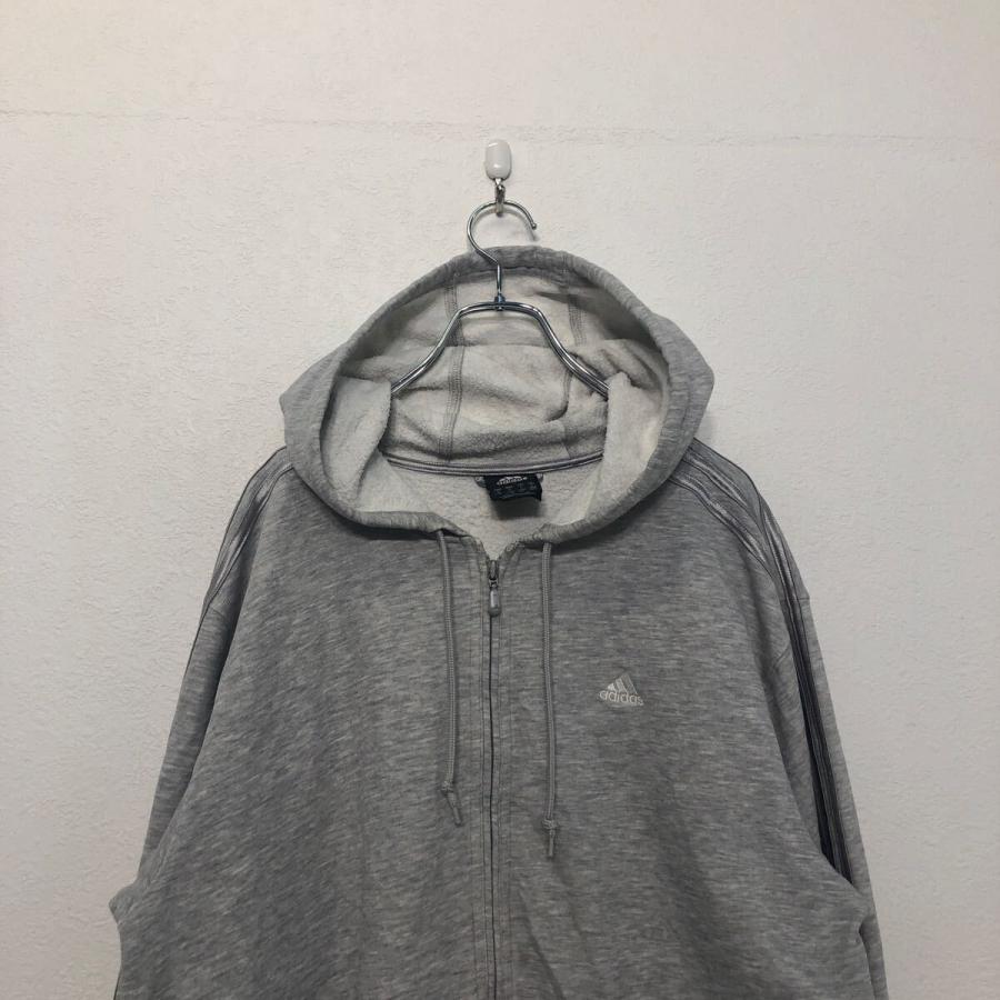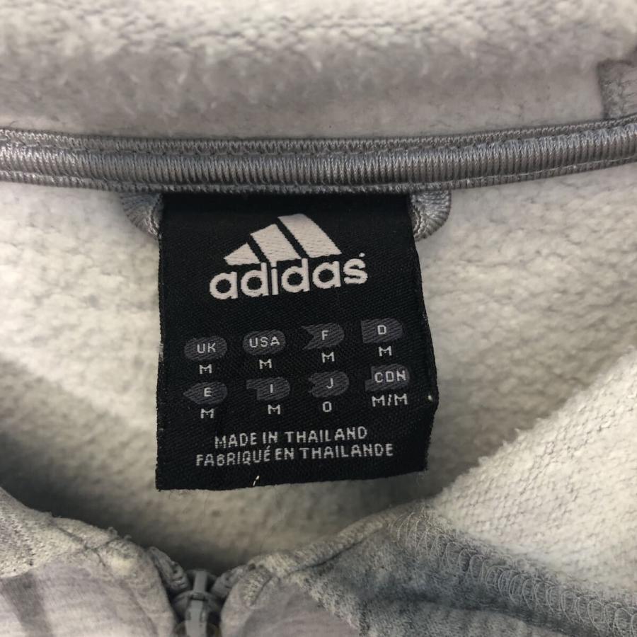 adidas ロゴ スウェット パーカー M アディダス グレー シルバー 刺繍 フルジップ ポケット 裏起毛 古着卸 アメリカ仕入 a603-6427