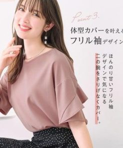 alotta アロッタ Alotta 【4つの機能付】フリル袖Tシャツブラウス (ライトブルー)
