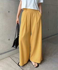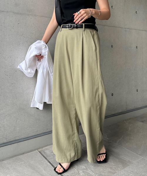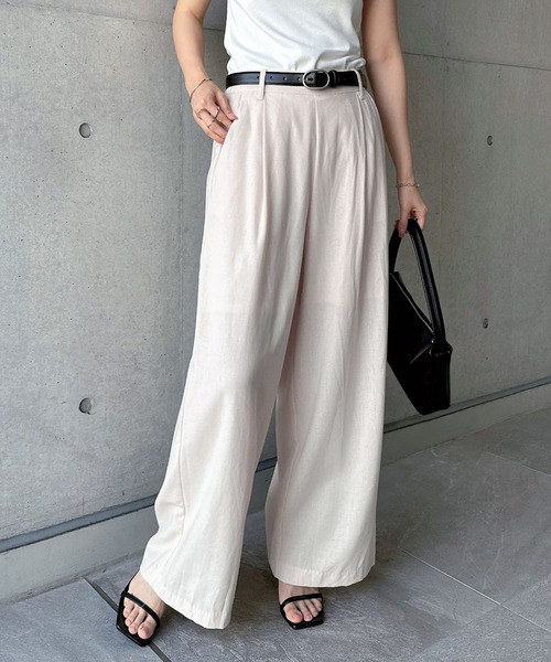 andme パンツ リネンブレンドタックワイドパンツ レディース