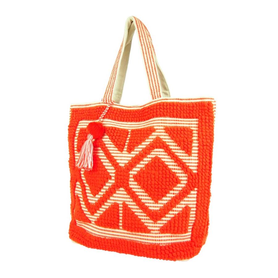 ネオンカラーで彩られたネイティヴ柄のトートバッグ。