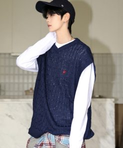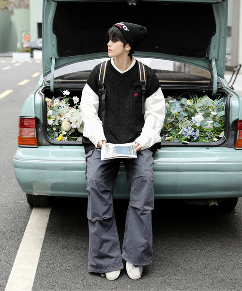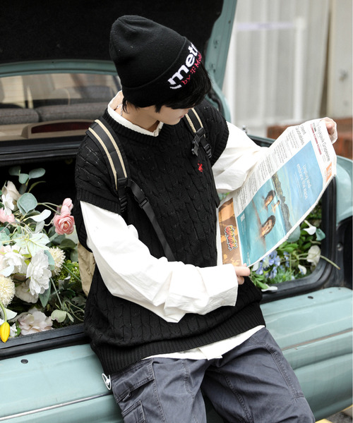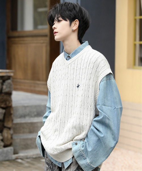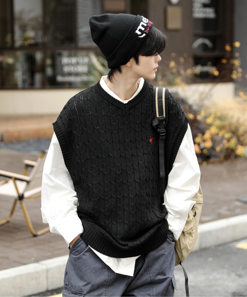 商品名:【neos】BEVERLY HILLS POLO CLUB ビバリーヒルズ ポロクラブ ルーズシルエット ワンポイント ロゴ刺繍 ケーブル ニット ベスト