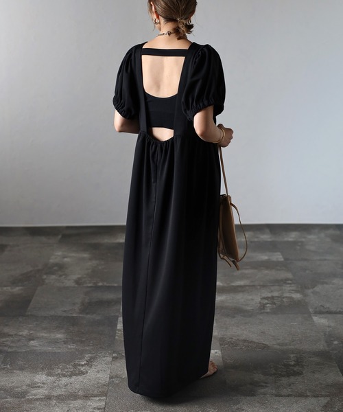 参考商品名:バックオープンパフスリーブコクーンワンピース
