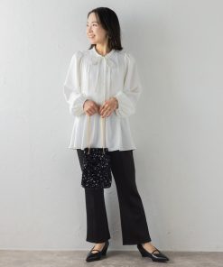 Bonjour Sagan ブラウス シャツ ひんやりタッチボリュームスリーブボウタイタックシャツ レディース