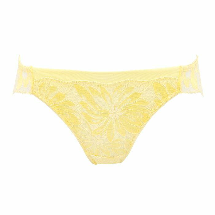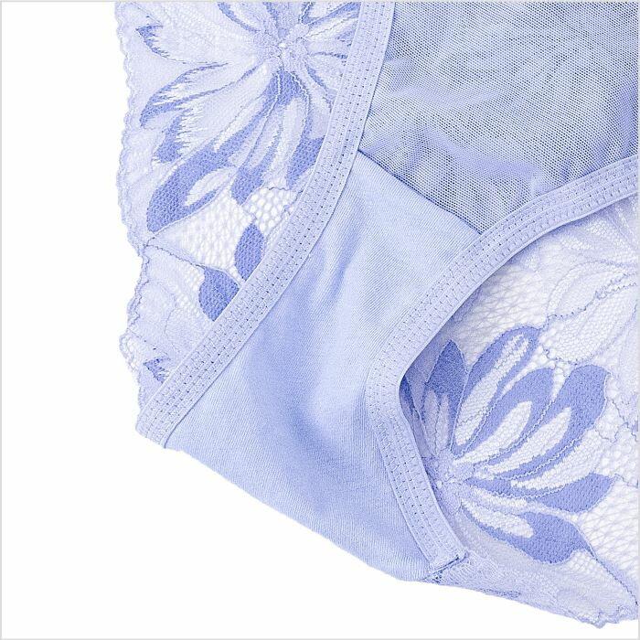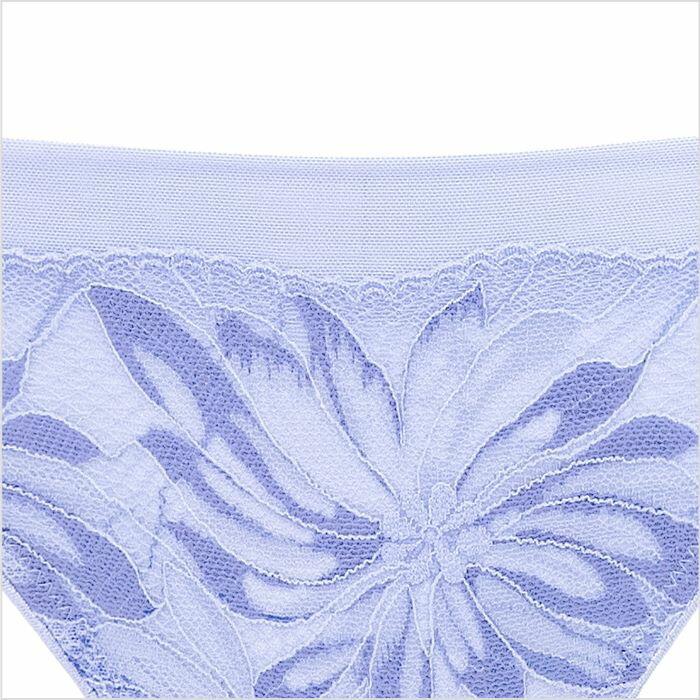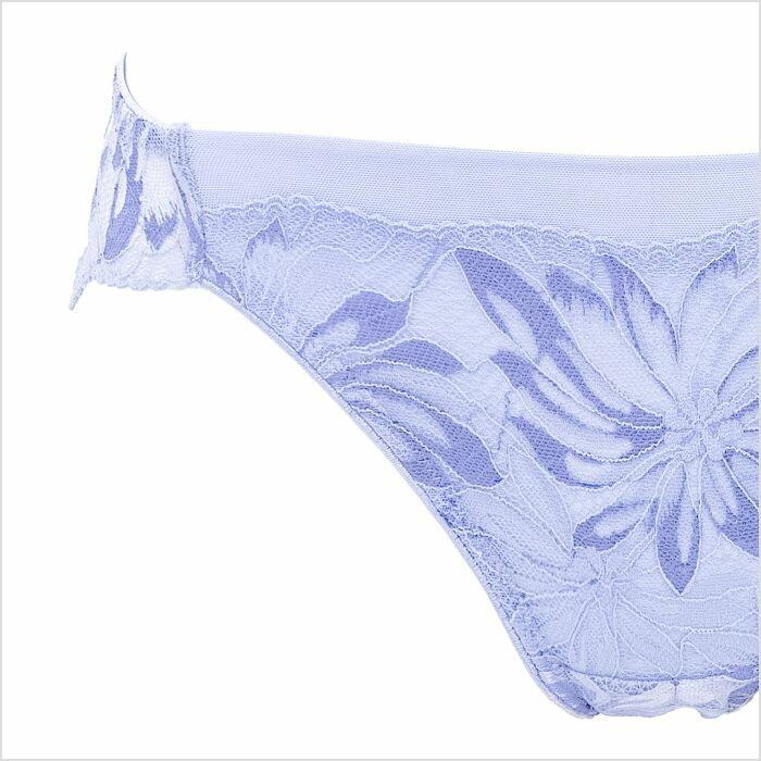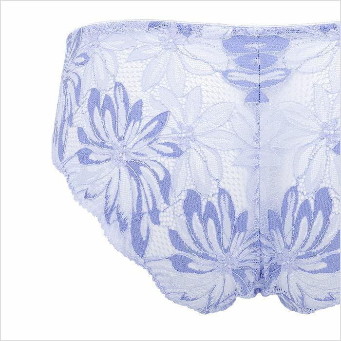 光沢感がある花柄の二浴染めストレッチラッセルレースを使用したショーツです。光沢感が美しく、上品な雰囲気のデザインです。