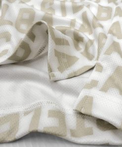 “ぼかし”をかけた様なプリント柄が特徴的で、リブで切り替えた襟にはkamonを編み込んできます。(襟裏面が配色になります)