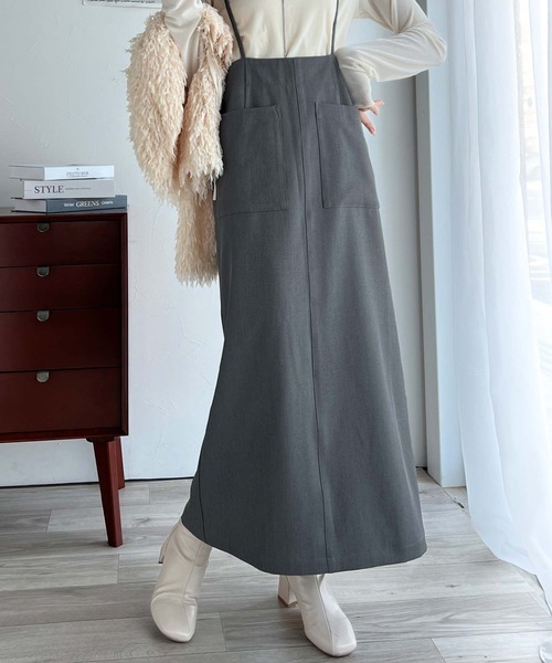 参考商品名:女性らしい上品シルエット。前後2wayサスペンダー付きタイトスカート(ロング丈・セットアップ可)