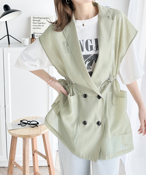 参考商品名:シンプルコーデを格上げ。ウエストドロストシアーダブルジレ