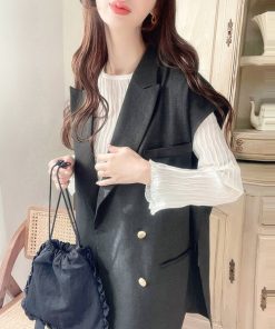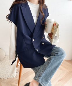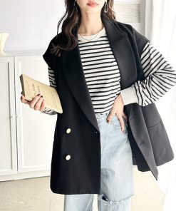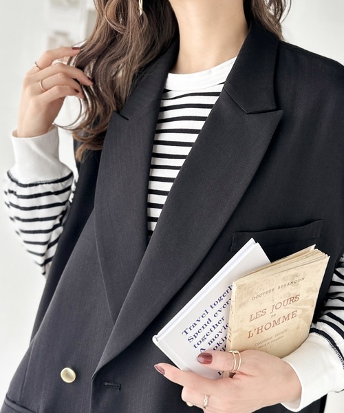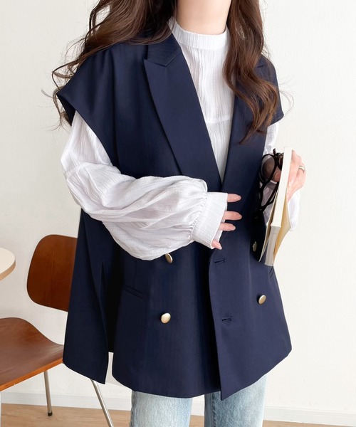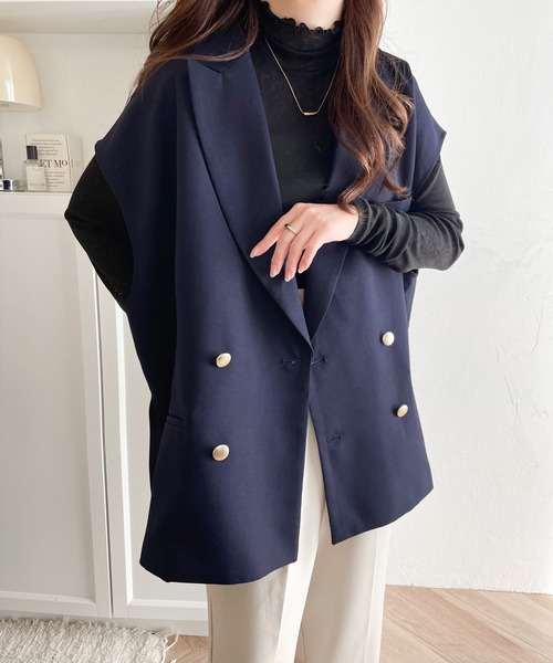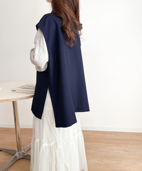 参考商品名:【8月下旬再入荷】大人のテーラードジレ。サイドスリットオーバーサイズダブルベスト
