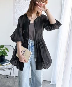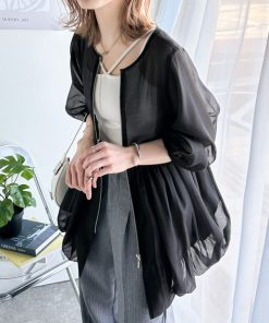 参考商品名:程よい透け感が女性らしい。前後2WAYのオーガンジーのバルーンブルゾン