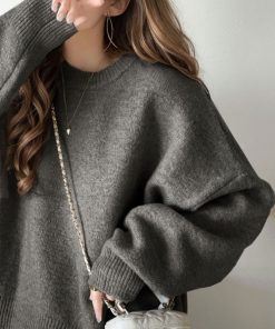 キーワード:ニット セーター レディース クルーネック ショート丈 長袖 無地 WEB限定 おうち リラックス ドライブ ピクニック レジャー プチプラ 公園 秋 大人カジュアル 定番 冬