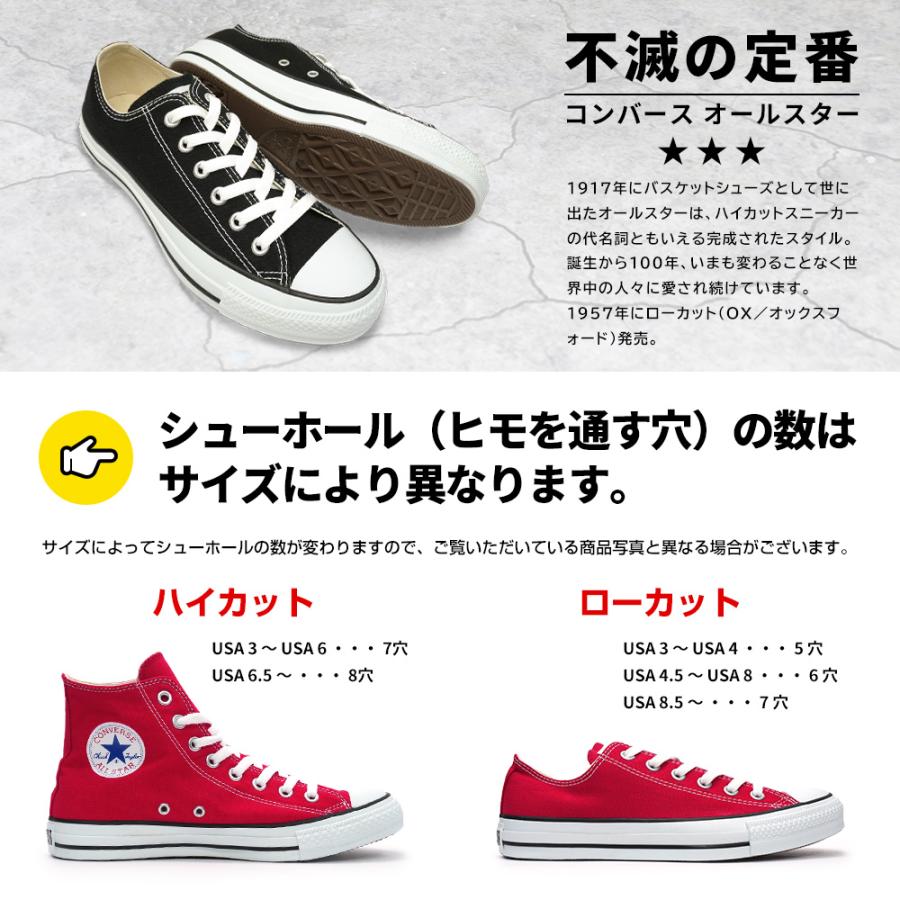 昼12時迄即日発送(弊社休日を除く)・全国送料無料・いわずと知れた不滅名品コンバースのオールスター!!永久不滅の完成されたスタイルが魅力!出回っている海外仕様や並行輸入品とちがい、厳しい品質管理のもとで生産されて安心な日本向けの正規品の商品です。(日本で生産されていると言う意味ではありません。)ご希望のサイズが出品されていない場合お取り寄せできます。