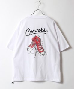 CONVERSE tシャツ CONVERSE/コンバース UVカット 接触冷感 シューズイラストバックプリント 裾ドローコード付半袖Tシャツ レディース メンズ