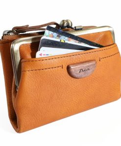 大きく開き出し入れがしやすいがま口タイプの小銭入れ。