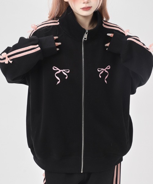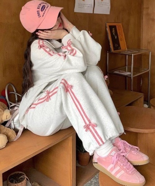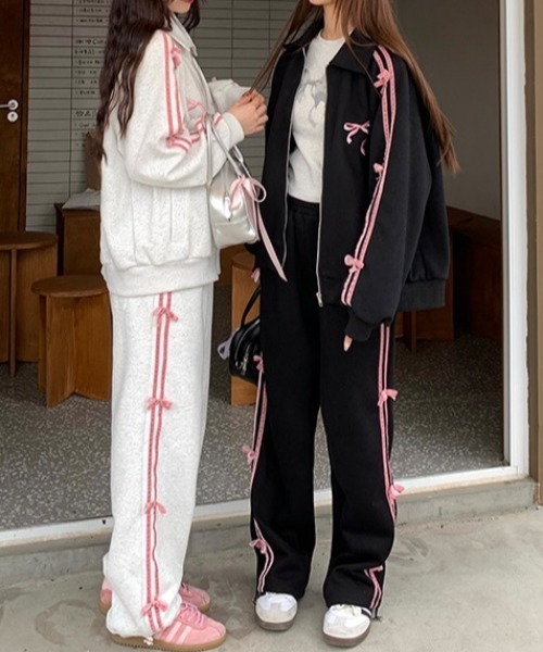 商品名:大人気【 セットアップ 】サイドラインミニリボンスウェットブルゾン &パンツ SET