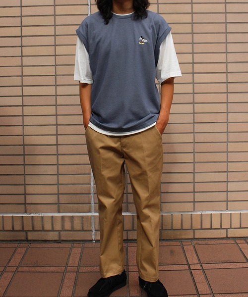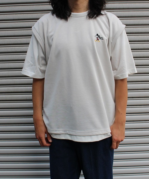 Disney tシャツ 「DISNEY/ディズニー」ミッキーマウス ワンポイント刺繍配色ポンチレイヤードTシャツ メンズ レディース