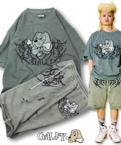GALFY ガルフィー 半袖Tシャツ 短パン セットアップ 染め染めわんちゃんボロボロ Tee ボロボロショーツ 132000 132001 L XL 黒 紺