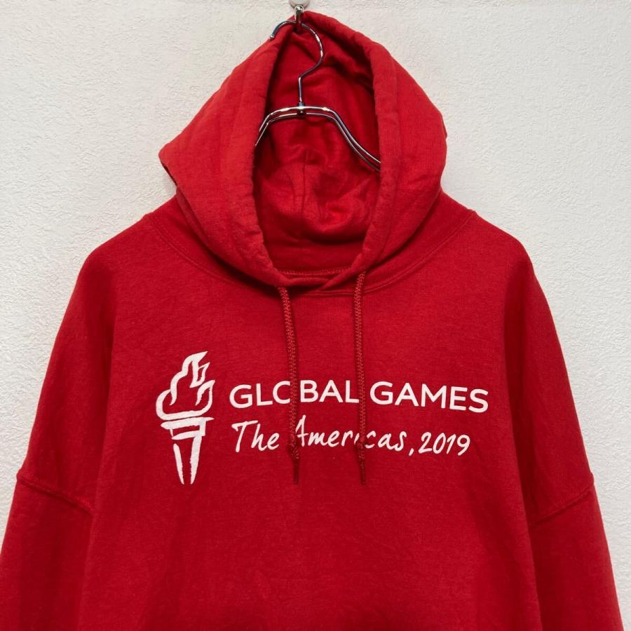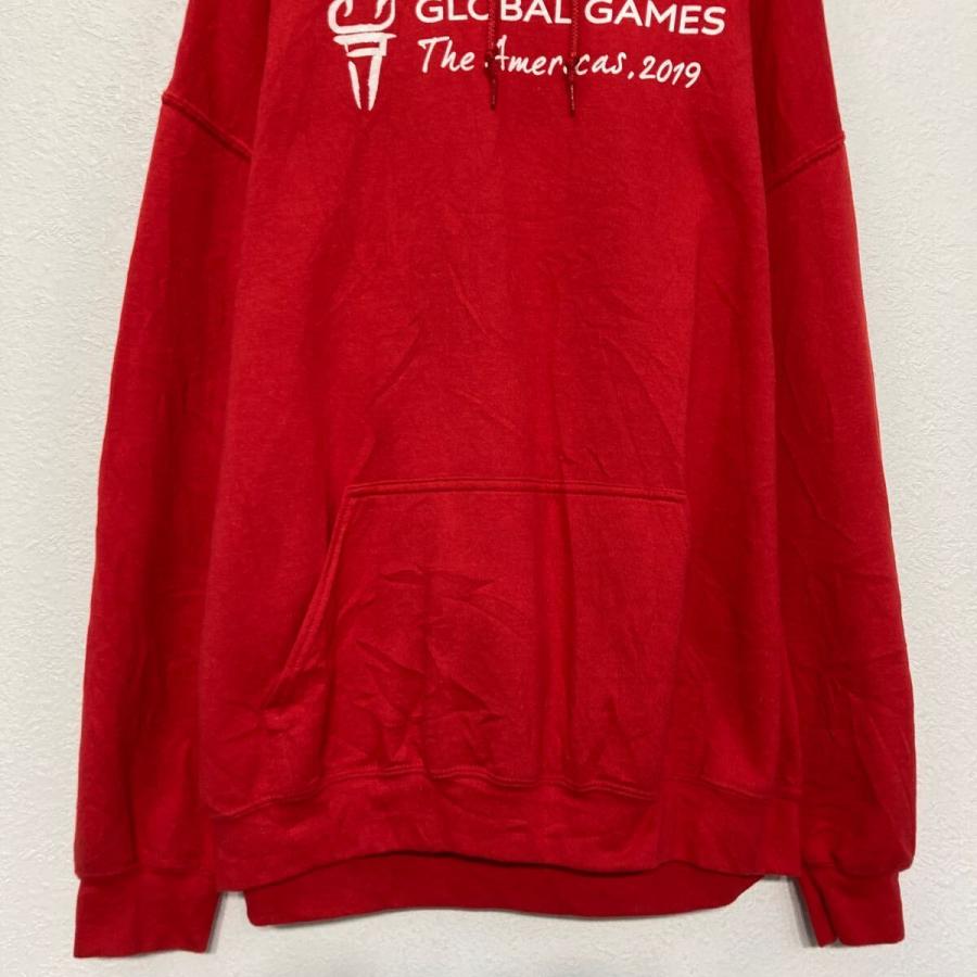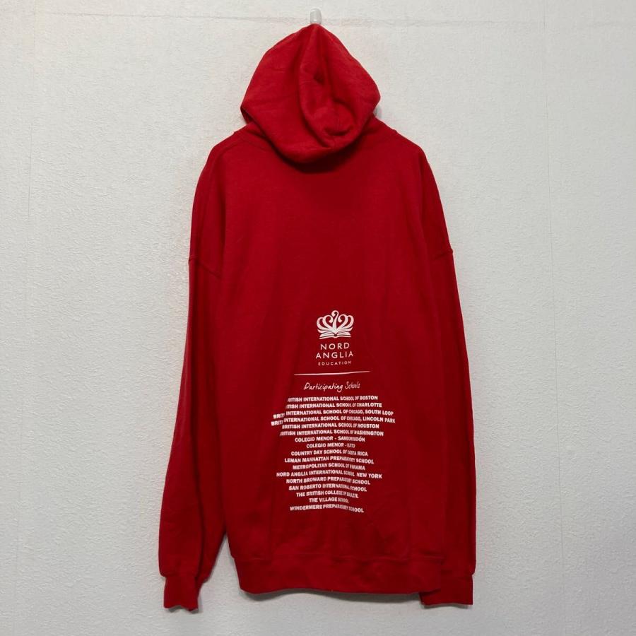 GILDAN プリント スウェット パーカー ギルダン XL レッド ビッグサイズ バックプリント 古着卸 アメリカ仕入 a609-5165
