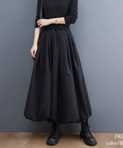 GOLDJAPAN 大きいサイズレディース スカート ロング タック フレア ウエストゴム ギャザー 冬新作 秋服 冬服 春服 夏服 LL 2L 3L 4L 5L F ブラック 黒 ゴールドジャパン