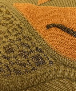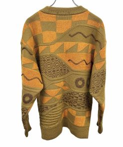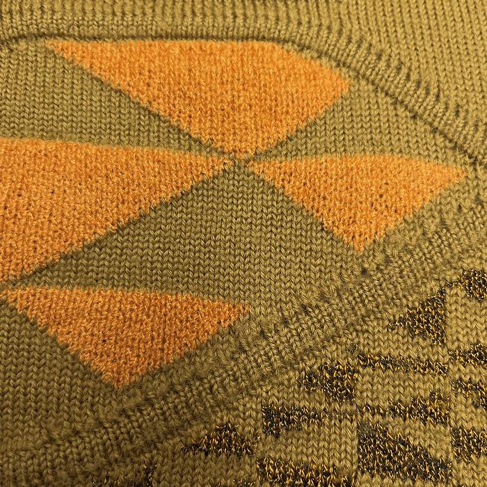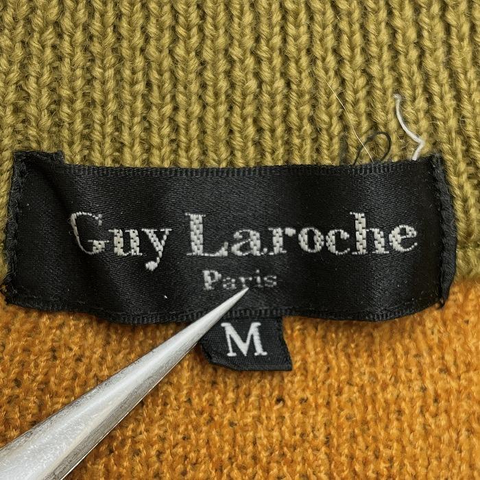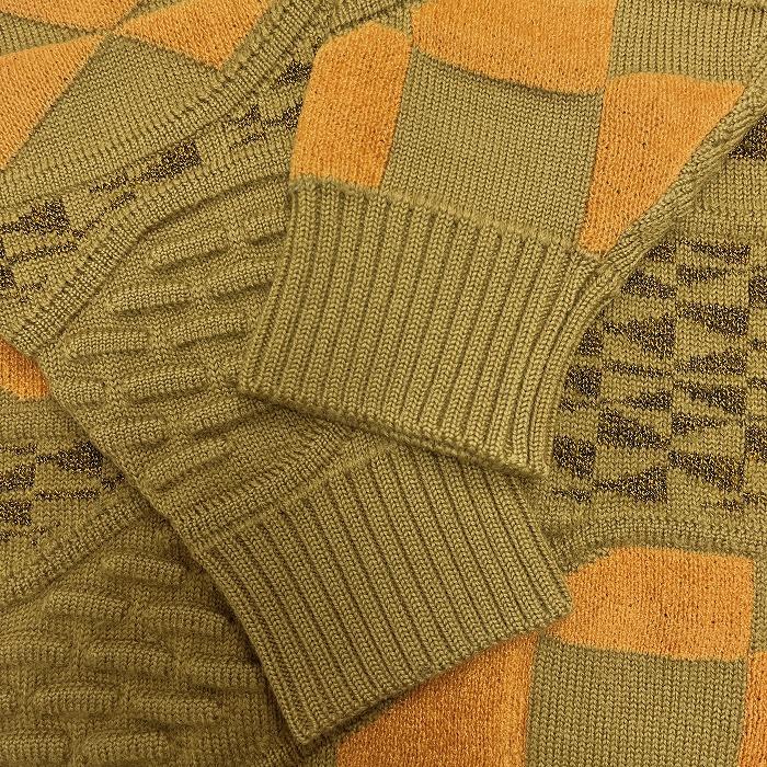 Guy Laroche ギラロッシュ セーター ジャカード 総柄 長袖 丸首 ウール×アクリル×レーヨン M グリーン 緑×茶 (ラメ糸:ゴールド) メンズ