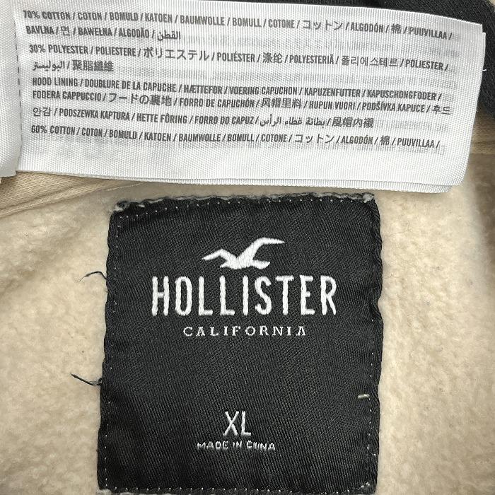ホリスター HOLLISTER プルオーバー パーカー スウェット 裏起毛 長袖 袖にロゴテープ 綿×ポリ XL LL ベージュ ベージュ×黒×白 メンズ