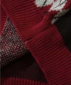 HOOK -original- 古着風 レトロ調うさぎ刺繍配色アーガイル柄ポロ襟ニット
