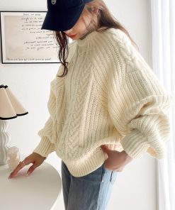 参考商品名:《JaVaジャバ コラボ》冬の即戦力。2wayミックスカラー糸アンゴラタッチケーブル編みニットプルオーバー