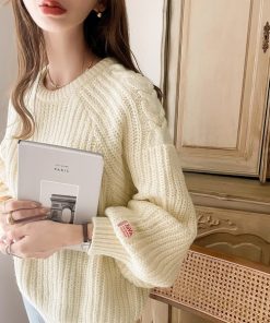 キーワード:ニット セーター レディース クルーネック 長袖 無地 秋 冬
