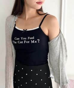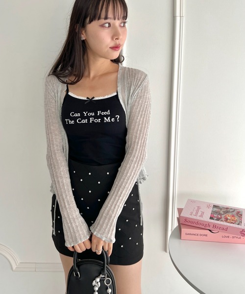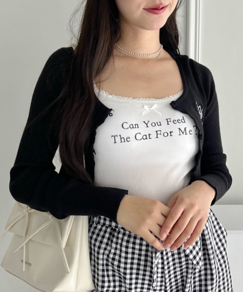 Loueme キャミソール プチリボンロゴプリントカップ付きキャミソール