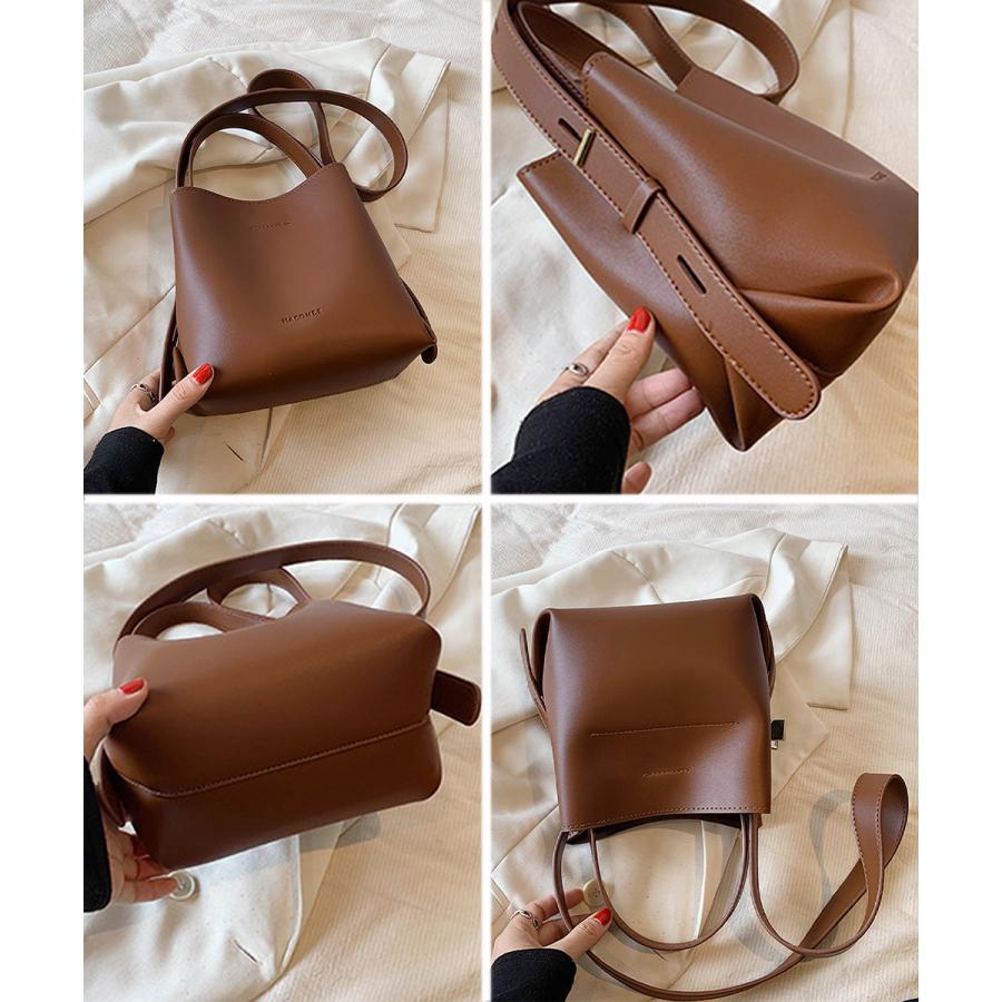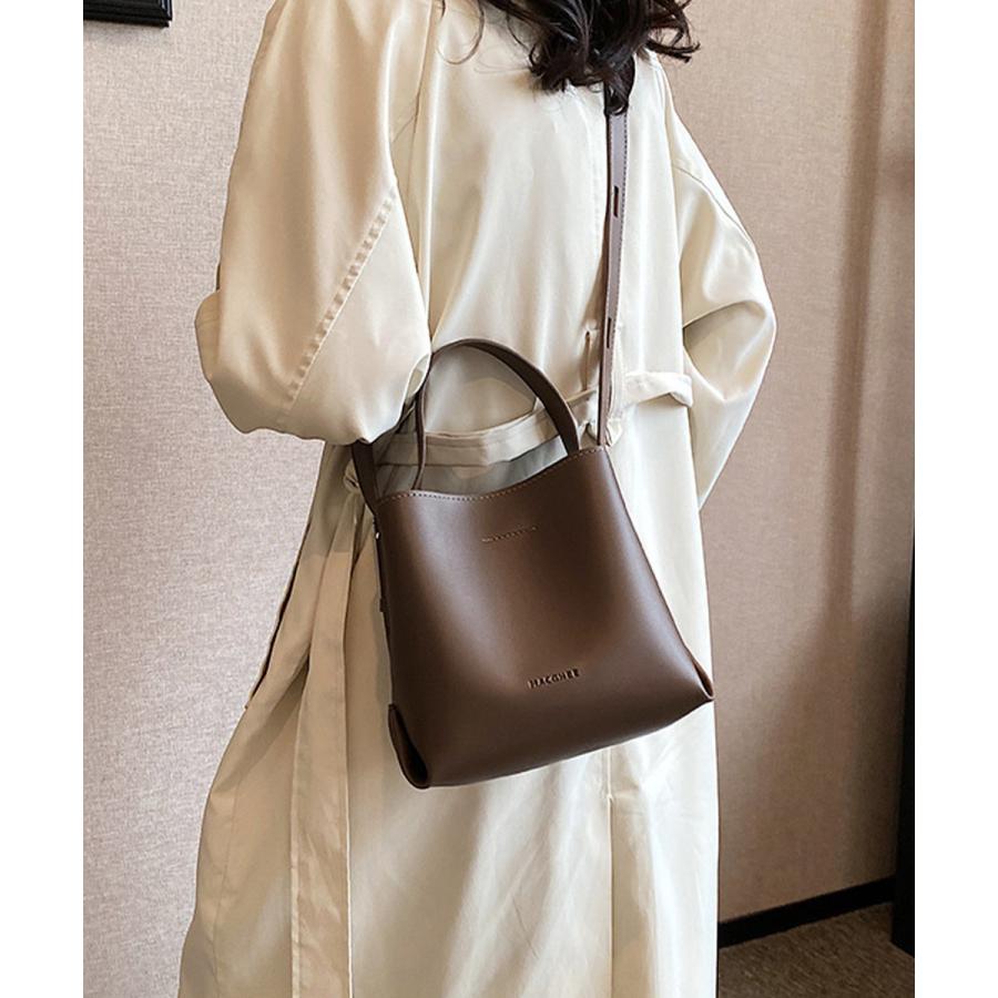 レディース 大人可愛い ミニハンドバッグ PUレザー オフィスカジュアル スクエア 斜め掛けバッグ バケツ型 合皮かばん