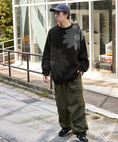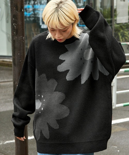 参考商品名:【FLOOWM/フルーム】Wジャガード フラワーグラフィック ビッグシルエットプルオーバーニット