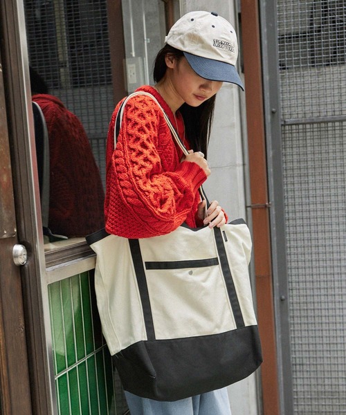 商品名:【retock’s】配色グローサリーバッグ ヴィンテージライクゴールドDカン付 キャンバスビッグトート