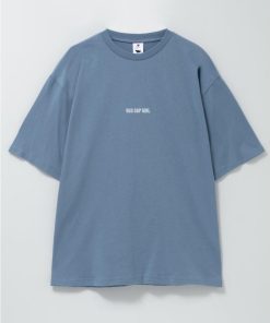イヤホンで音楽を聴いている女の子のプリントが特徴的な半袖Tシャツ。