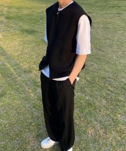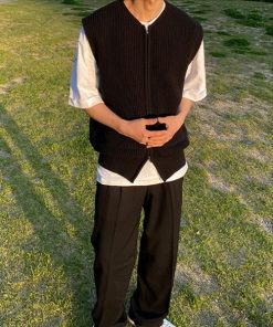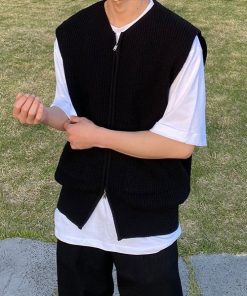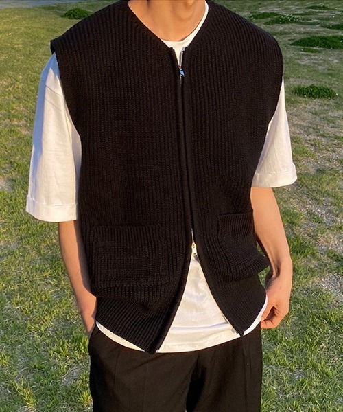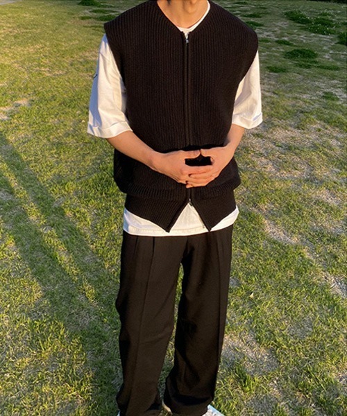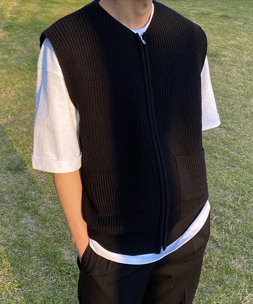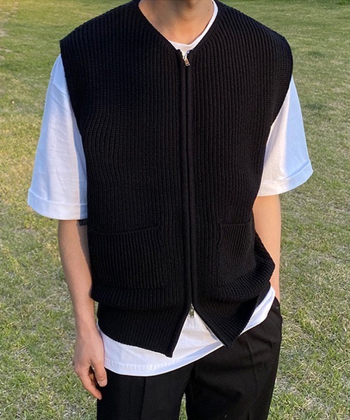 参考商品名:オーバーサイズ ダブルジップアップニットセーター ノースリーブベスト