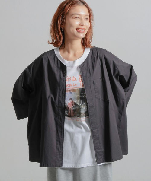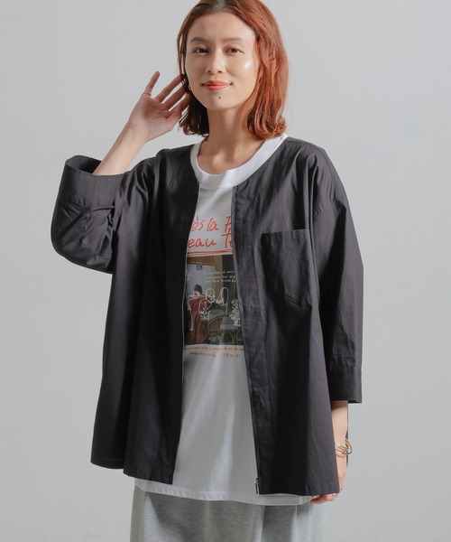 studio CLIP ブルゾン アウター ノーカラーシャツブルゾン レディース
