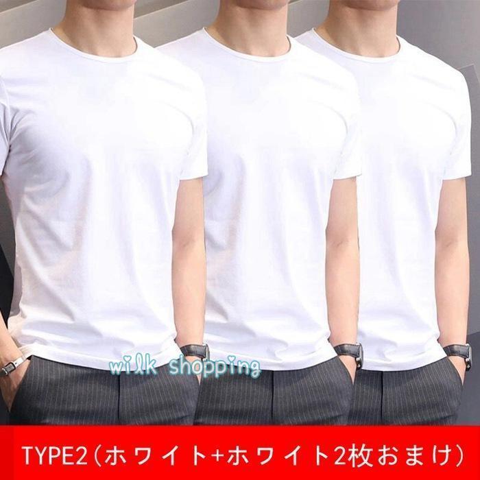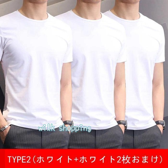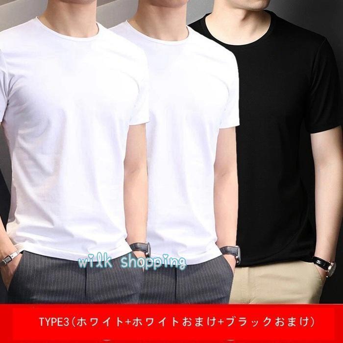 Tシャツ 「一枚買うともう2枚プレゼント 一枚3円相当」半袖 メンズ インナー 通気性 夏 吸汗 速乾 クルーネック 軽量 ストレッチ インナーシャツ 快適 薄手