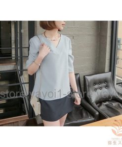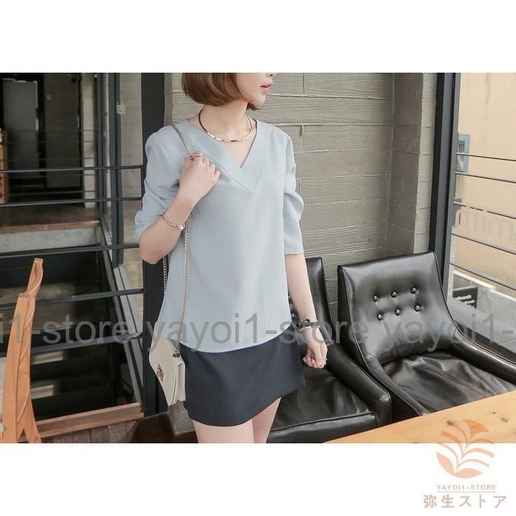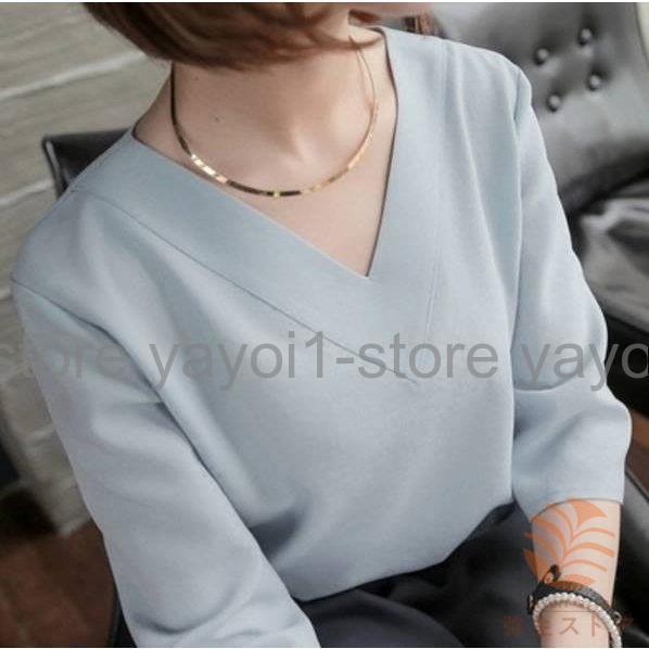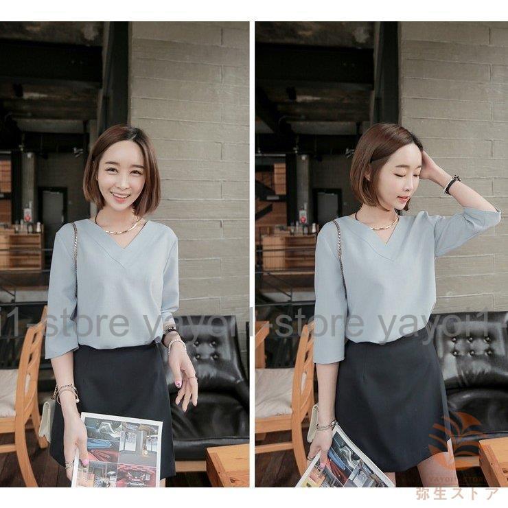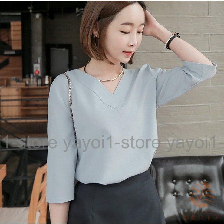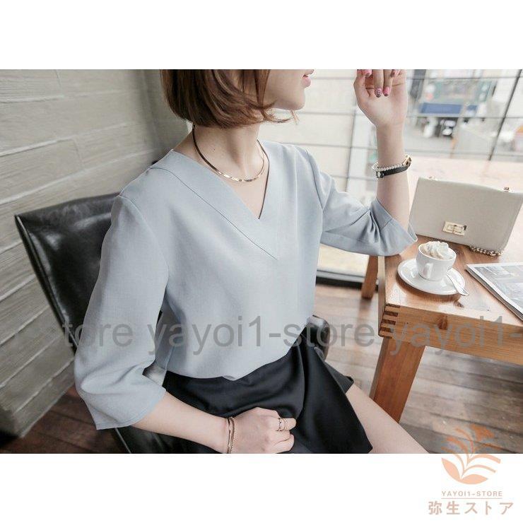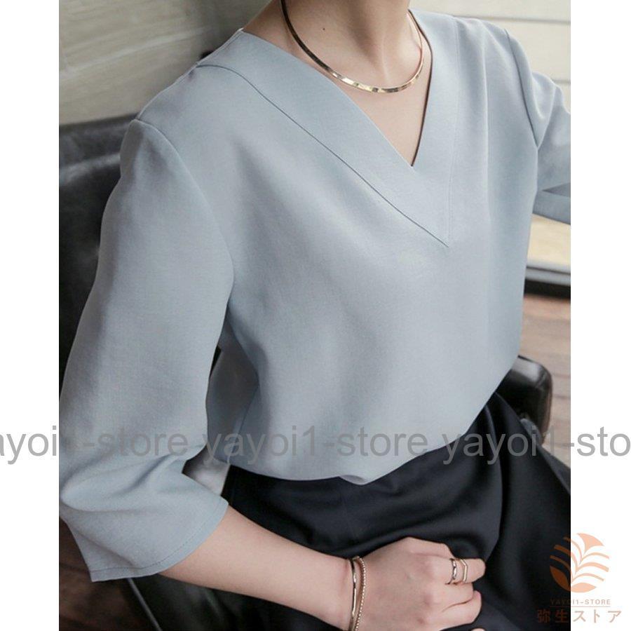 Tブラウス シャツ スーツ インナー ブラウス vネック 七分袖 フレアスリーブ オフィス カジュアル レディース フォーマル ス スキッパーシャツ カットソ…