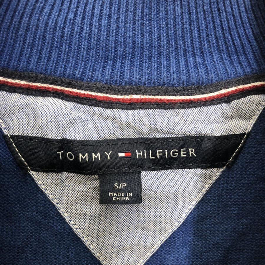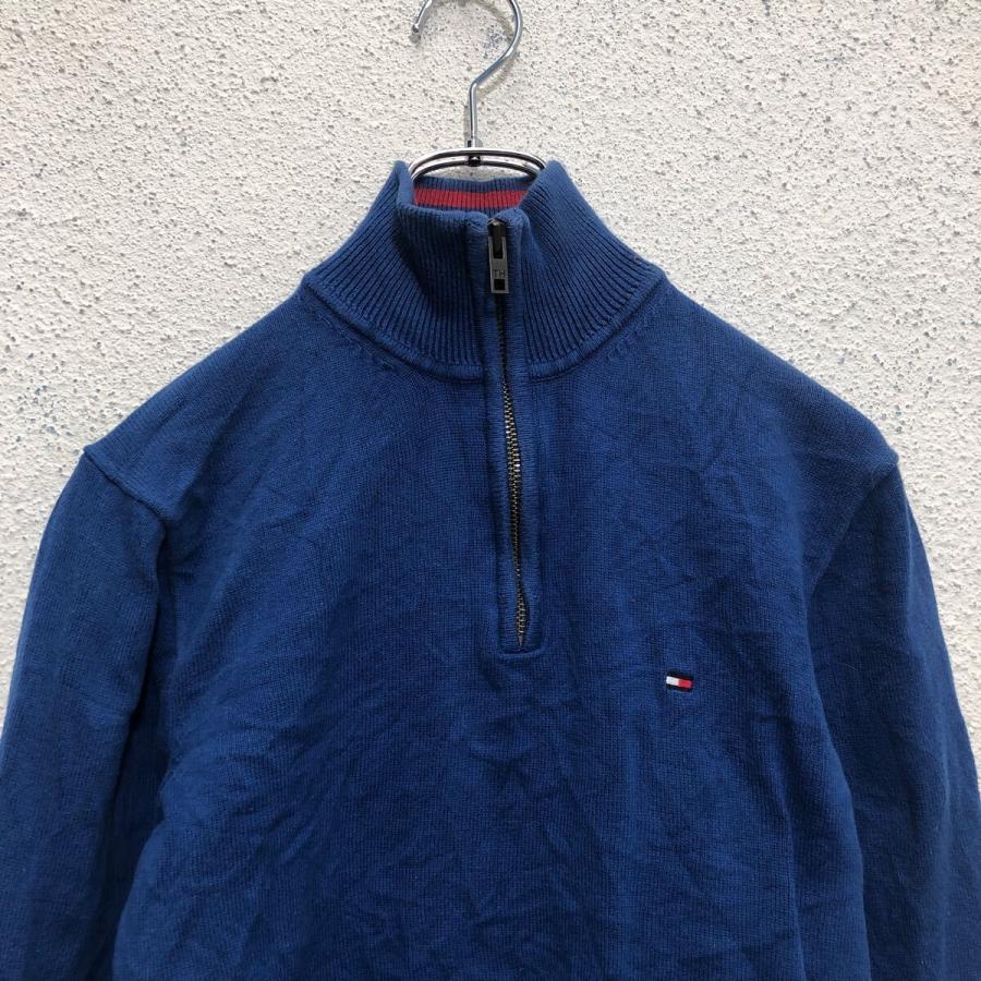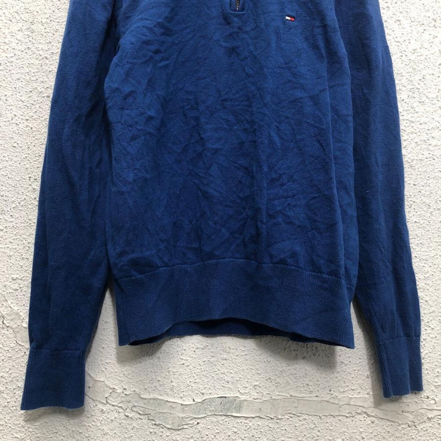 TOMMY HILFIGER コットン ニット セーター トミーヒルフィガー S ブルー ハーフジップ 古着卸 アメリカ仕入 a605-8343