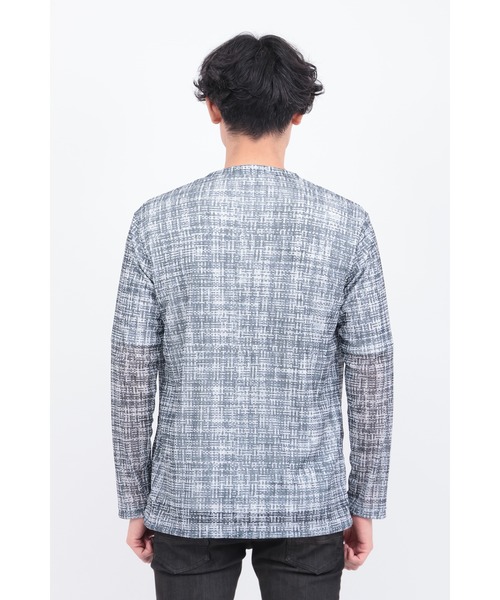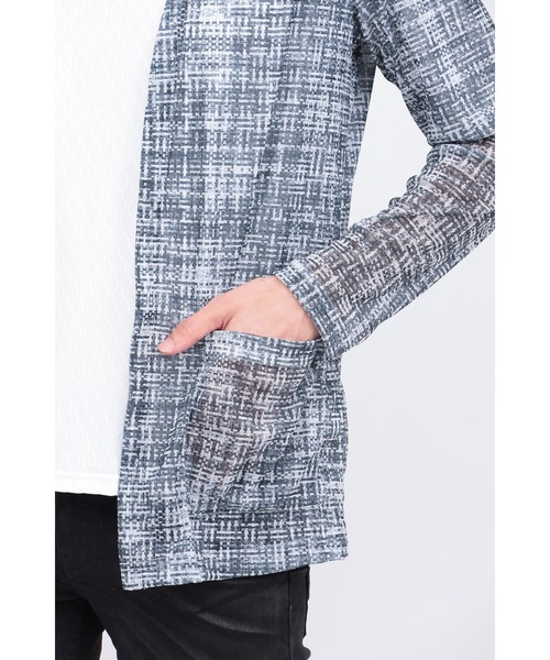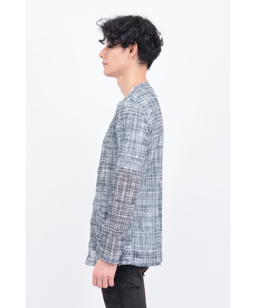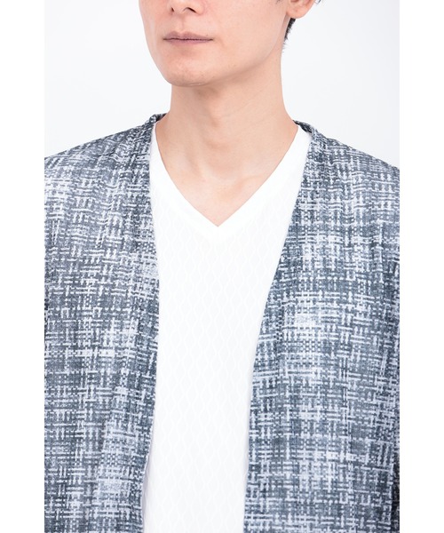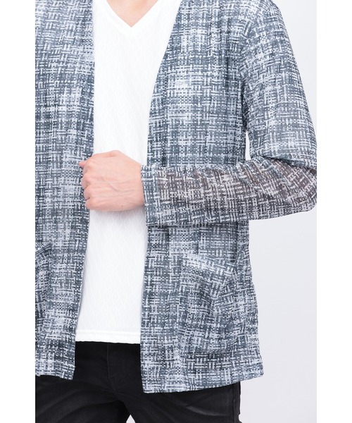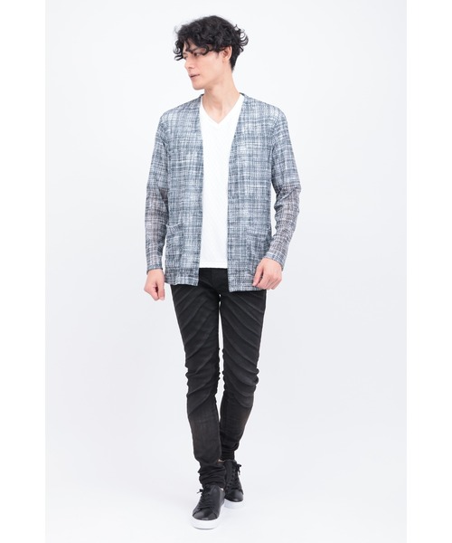 TORNADO MART tシャツ モザイクチェックノーカラーカーデ メンズ